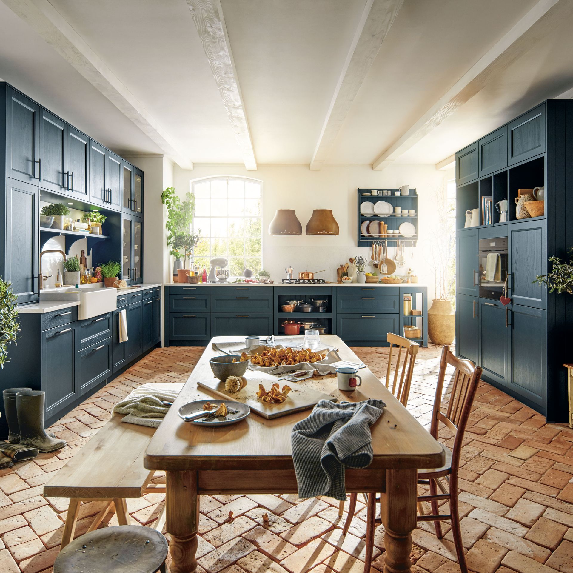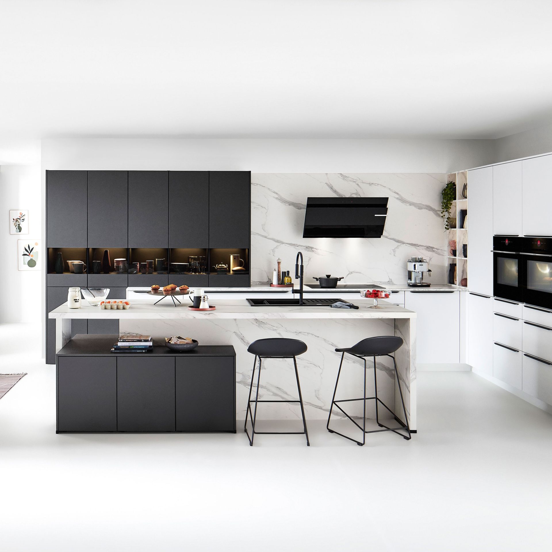 Wie sieht die Küche in den 2020-er Jahren aus? Eines ist klar: Sie ist offen für Neues. Offenes Wohnen ist so aktuell wie nie zuvor, und die einzelnen Lebensbereiche verschwimmen. In der Küche wird gearbeitet, gustiert und gekostet, auch gegessen, gechillt und verweilt. Das nicht mehr so wie vor einigen Jahren meist in klinischem Weiß, sondern in eher dunkleren Tönen. Dabei reicht der Bogen von Anthrazit über Mitternachtsblau und Tannengrün bis zu dunklen Hölzern, in die sich immer wieder ein neuer, leichter Rosé Ton mischt und für frischen Wind sorgt. Diese Farbwelt ist oft matt, in Anti-Fingerprint Optik, meist grifflos und mit vielen praktischen Details gespickt. Es gibt unzählige Varianten, um typische Küchenhelfer verschwinden zu lassen, die dann mit einem Handgriff sofort parat sind. Die Zeiten, in denen die Küche offensichtlich mit ihren technischen Hilfsmitteln geprahlt hat, sind Schnee von gestern. Alle Linien sind klar und puristisch. Die Küche beeindruckt als stylishes Designmöbel und Blickfang zugleich.