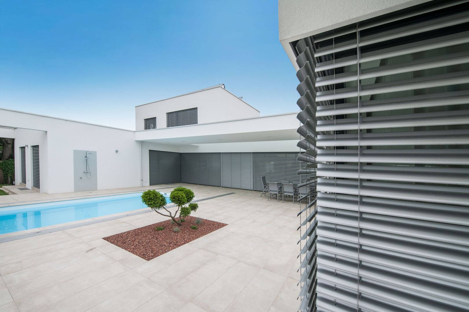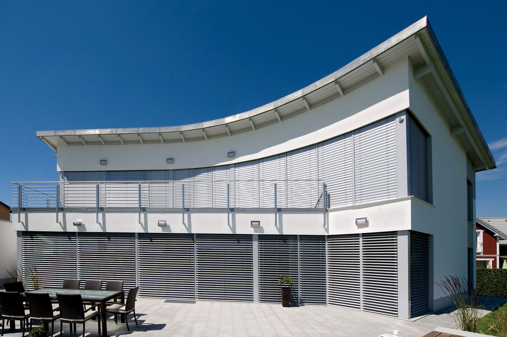 Raffstores sind höchst effiziente Beschattungssysteme und zeichnen sich durch ihren hohen Anspruch an Design und Funktion aus. Die schwenkbaren Aluminiumlamellen dosieren bei jedem Sonnenstand das Tageslicht und den Schatten genau nach Bedarf – egal ob Sie entspannen der konzentriert arbeiten wollen.